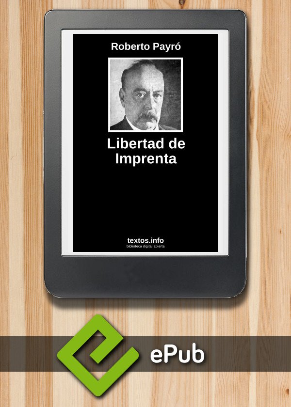 Este ebook gratuito del libro de Roberto Payró «Libertad de Imprenta» en formato ePub se enviará de forma inalámbrica a un dispositivo Pocketbook. El libro estará disponible automáticamente tras la sincronización del dispositivo.